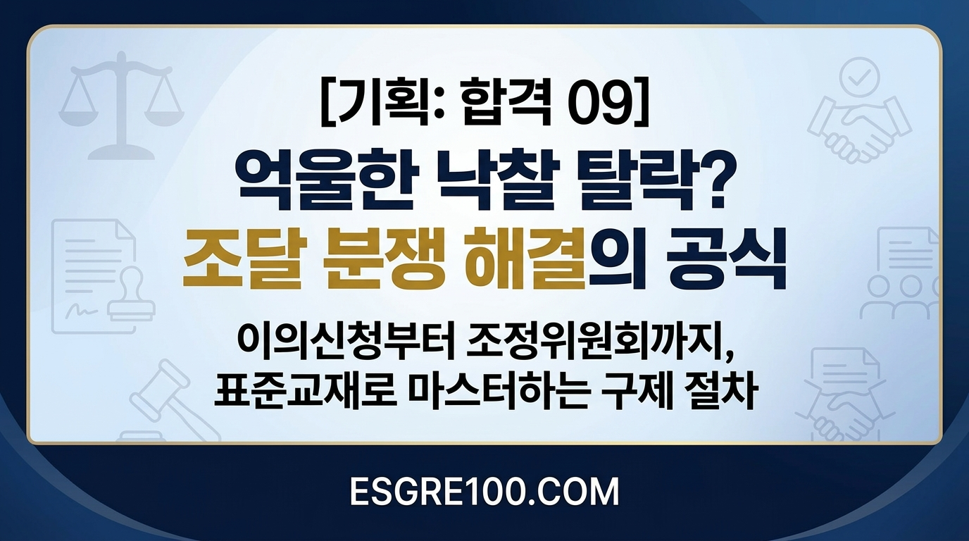 공공조달관리사 표준교재 제1권 '공공조달의 이해'와 제4권 '공공조달 관리실무'에 따르면, 조달 절차 중 발생하는 분쟁은 신속하고 공정하게 해결되어야 한다. 조달청은 기업의 권익을 보호하기 위해 분쟁 조정 제도를 활성화하고 있으며, 이는 한국구매조달학회가 지향하는 '투명한 조달 생태계'의 완성이다.